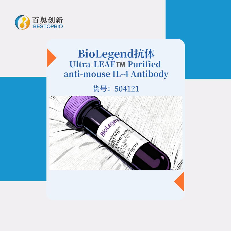 BioLegend Ultra-LEAF™ 纯化抗小鼠IL-4抗体(克隆11B11)是一款高性能、低内毒素(<0.01 EU/µg)的抗体试剂。经特殊工艺纯化,适用于体内功能研究及体外检测,可高效中和IL-4活性。其Ultra-LEAF™级别设计最大限度减少副作用,是细胞因子研究和免疫实验的理想选择,保障实验结果准确可靠。一、基本信息